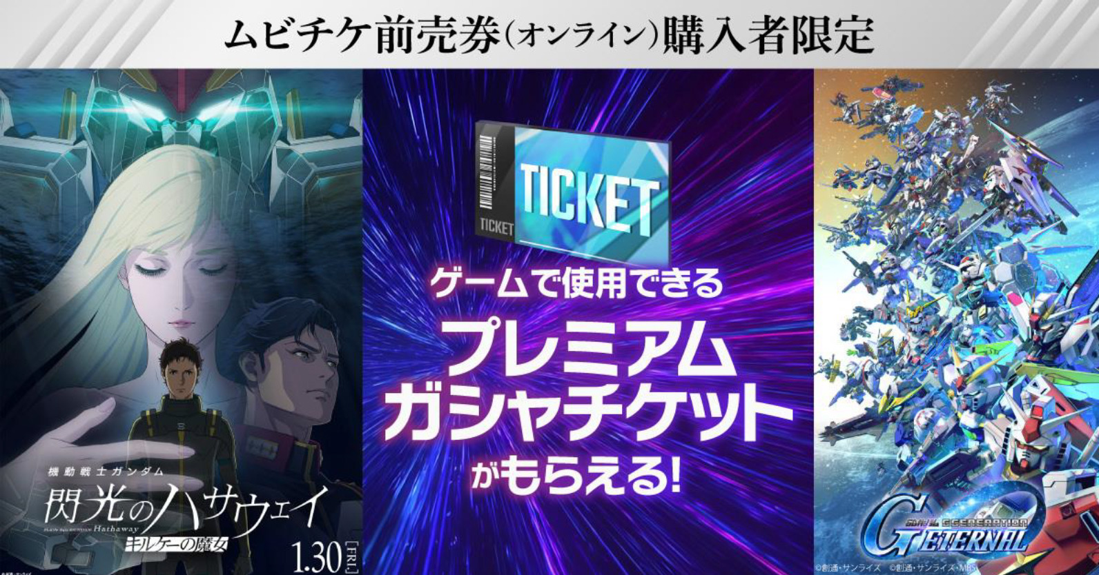 プレミアムガシャチケットがもれなくもらえる!『機動戦士ガンダム 閃光のハサウェイ キルケーの魔女』ムビチケ前売券(オンライン)購入者限定キャンペーン